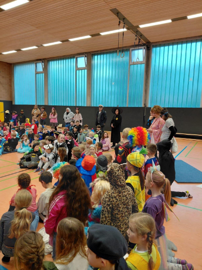 Schon am Morgen wimmelte es in den Fluren von fantasievollen Kostümen. Prinzessinnen, Superhelden, Tiere, Fußballer und viele andere Figuren sorgten für staunende Blicke. Immer wieder wurden Kostüme vorgestellt und bewundert – für viele Kinder ein echtes Highlight.