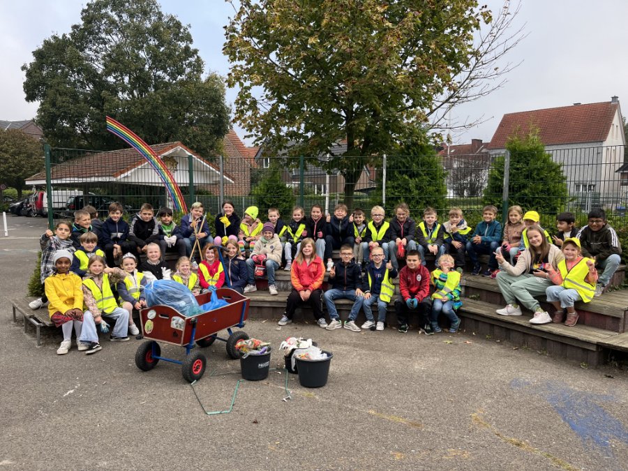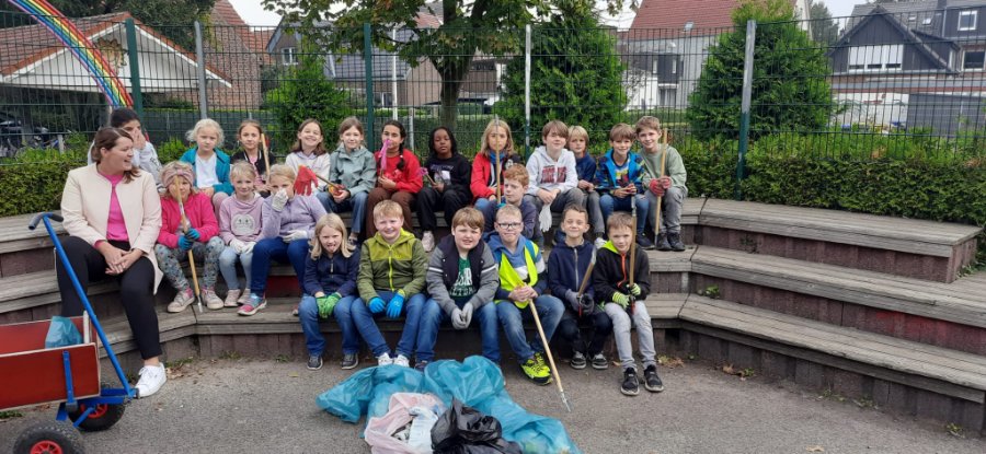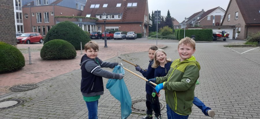 Teilweise sogar mit leuchtenden Warnwesten, in jedem Fall jedoch mit Handschuhen und reichlich Müllzangen ausgestattet zogen die Grundschüler der St. Marienschule los, um Appelhülsen von Müll zu befreien. Die Kinder streiften über den Spielplatz, durch Wohngebiete und an Straßenrändern vorbei, um ihren Beitrag zur Sauberkeit und zum Umweltschutz zu leisten.