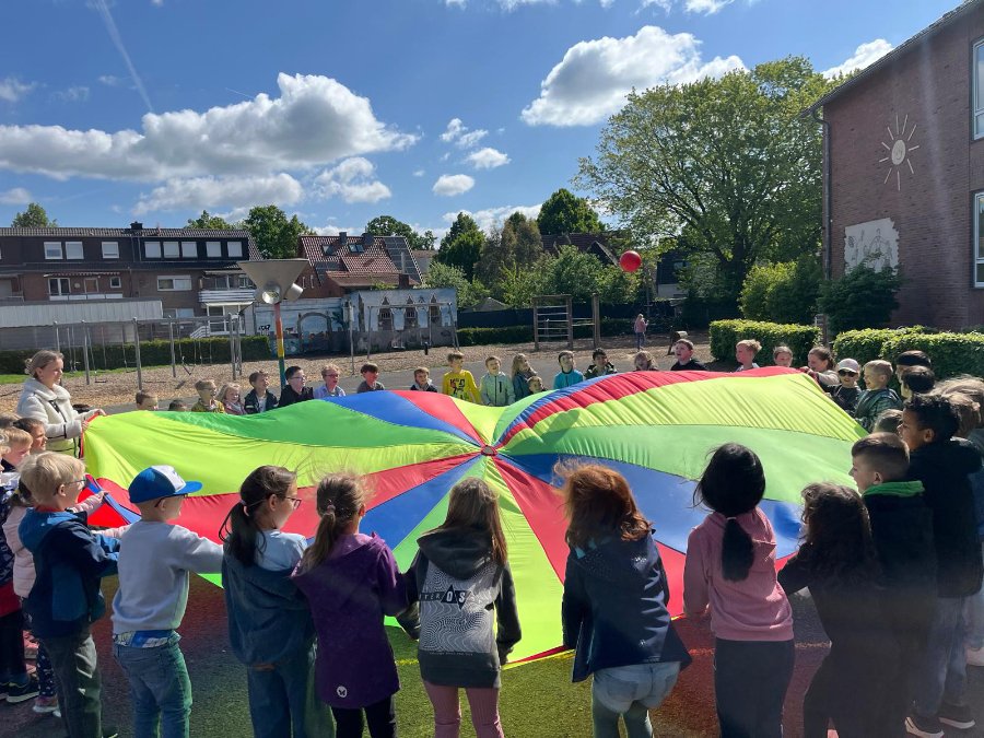 Die offizielle Übergabe fand am Mittwoch, dem 29. Januar 2025, in der großen Pause statt. Zur Freude der Kinder war auch Manfred Rickert von der Bürgerstiftung persönlich anwesend, um die Spende offiziell zu übergeben. Die neuen Spielgeräte sorgen für noch mehr Spaß und Bewegung auf dem Schulhof – eine tolle Bereicherung für die Pausenzeit.