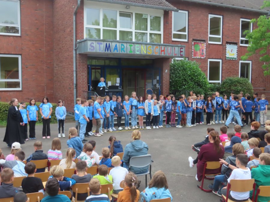 Abschlussgottesdienst, Verabschiedung der Viertklässler und Schuljahresabschlussfeier auf dem Schulhof der St. Marienschule!