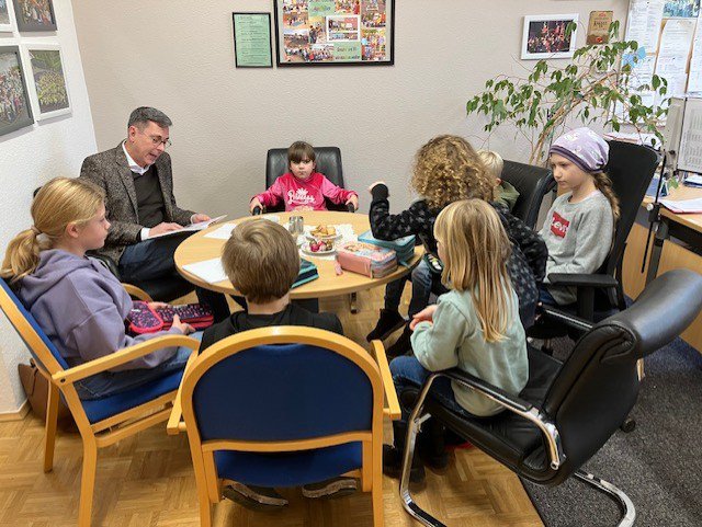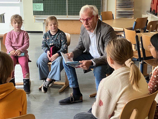 Auch der Bürgermeister Dr. Dietmar Thönnes trug zum Gelingen des Tages bei und folgte der Einladung der Schulleiterin. Mit viel Engagement las er den Kindern aus einem der gespendeten Bücher vor. Sein Besuch war ein weiteres Highlight, das die Bedeutung dieses besonderen Tages zusätzlich unterstrich.