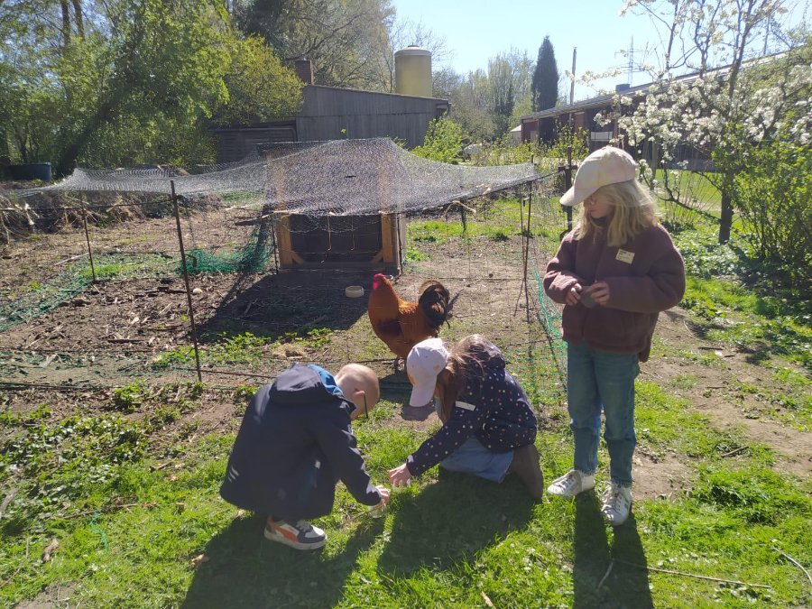 Beim Besuch der freilaufenden Hühner wurde der respektvolle Umgang mit Tieren besprochen. Die Kinder erfuhren, dass Tiere Ruhe und Abstand brauchen und wie wichtig es ist, ihre Lebensräume zu schützen. Einfache Verhaltensregeln wie „nicht schreien“, „nicht hinterherlaufen“ und „nicht füttern ohne Erlaubnis“ wurden gemeinsam erarbeitet.
