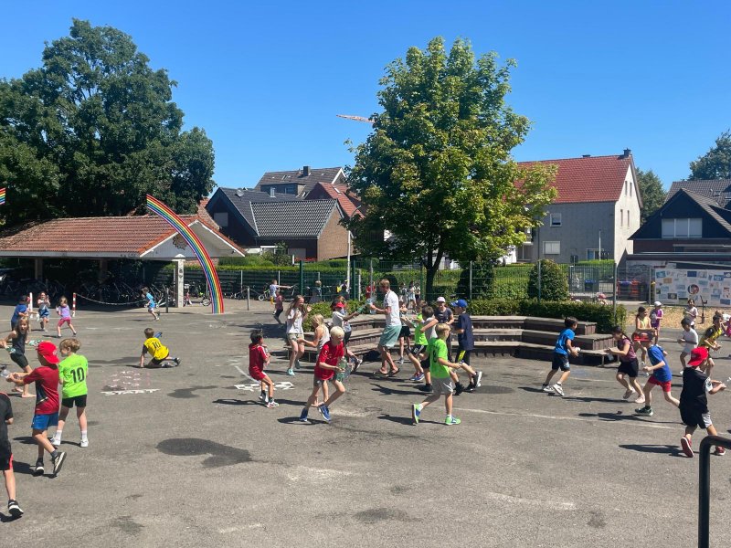 Am Montag, den 1. Juli, fand an der St. Marienschule das diesjährige Sportfest statt – bei strahlendem Sonnenschein und sommerlichen Temperaturen. Im Mittelpunkt stand die Teilnahme am AOK-Laufwunder, einem bundesweiten Ausdauerlauf-Projekt zur Förderung von Bewegung im Schulalltag.