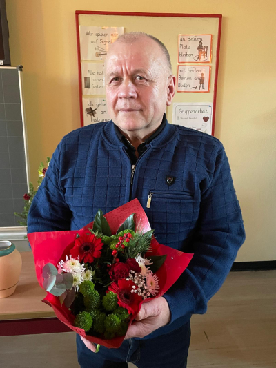 Nach 22 Jahren zuverlässiger Arbeit verabschiedeten wir unseren langjährigen Hausmeister Herrn Brant. Über viele Jahre kümmerte er sich mit großem Engagement um alles rund um das Schulgebäude und hatte dabei stets Freude an seiner Arbeit. Auch das Wohl aller Kinder lag ihm stets am Herzen.