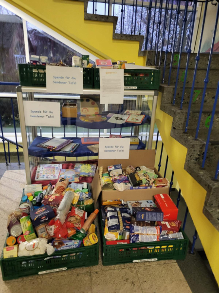 Auch in diesem Jahr sammelte die St. Marienschule Appelhülsen eine Woche lang Lebensmittel und weitere haltbare Artikel für die Sendener Tafel. Viele Klassen und Eltern beteiligten sich und füllten die Körbe im Treppenhaus nach und nach mit zahlreichen Spenden: von Nudeln, Reis und Konserven über Zutaten für die Adventsbäckerei und süße Leckereien bis hin zu Kaffee, Tee sowie verschiedenen Hygieneartikeln.